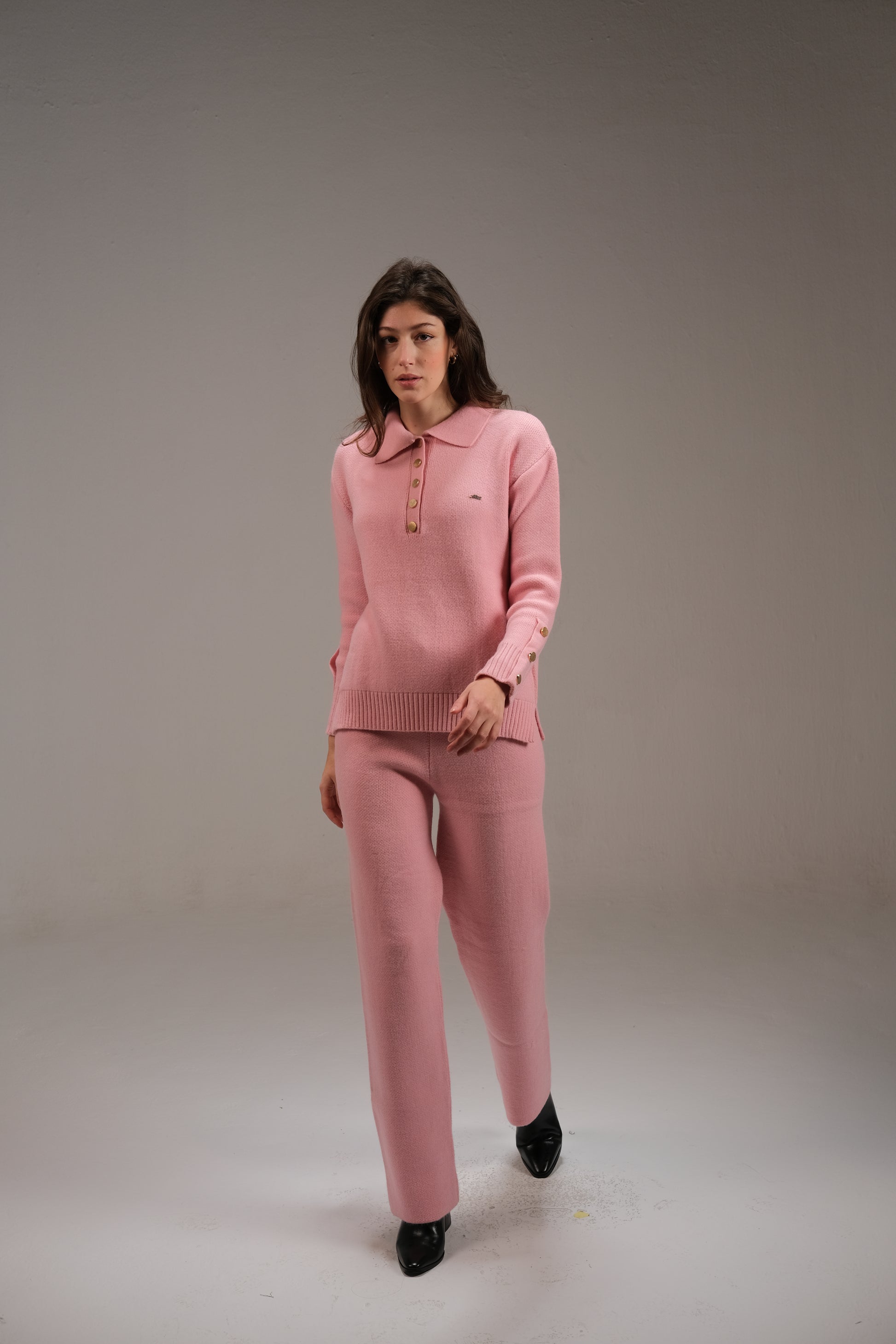 Knitted Cotton Trousers in Pink